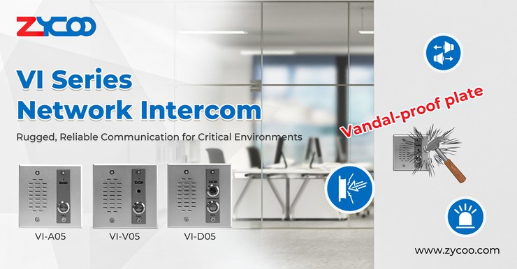 We are thrilled to announce the launch of the ZYCOO VI Series Network Intercom—a lineup of rugged, vandal-proof devices designed to elevate communication efficiency and security across diverse settings. Available in three specialized models: the audio model VI-A05, the video model VI-V05, and the dual-button model VI-D05.