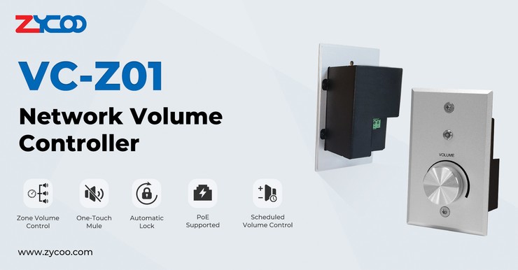 We are excited to introduce the ZYCOO VC-Z01 Network Volume Controller, a compact network audio control device that allows real-time volume adjustment of endpoint devices within a room or a zone via multicast.