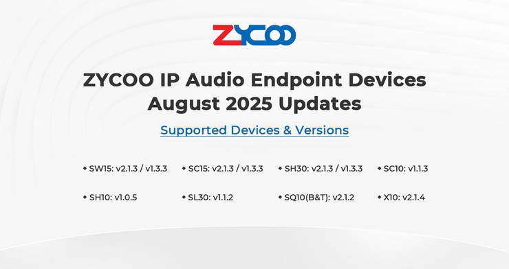 We’re pleased to share the latest software updates for ZYCOO IP Audio Endpoint Devices, designed to enhance functionality, stability, and compatibility for your audio systems. This August release brings new features, critical optimizations, and bug fixes across multiple device models.