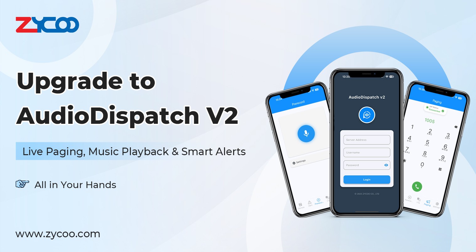 Great news for ZYCOO IP audio users—our AudioDispatch App just got a powerful upgrade to V2! Now you can take full, arbitrary control of terminal broadcasts right from your device.