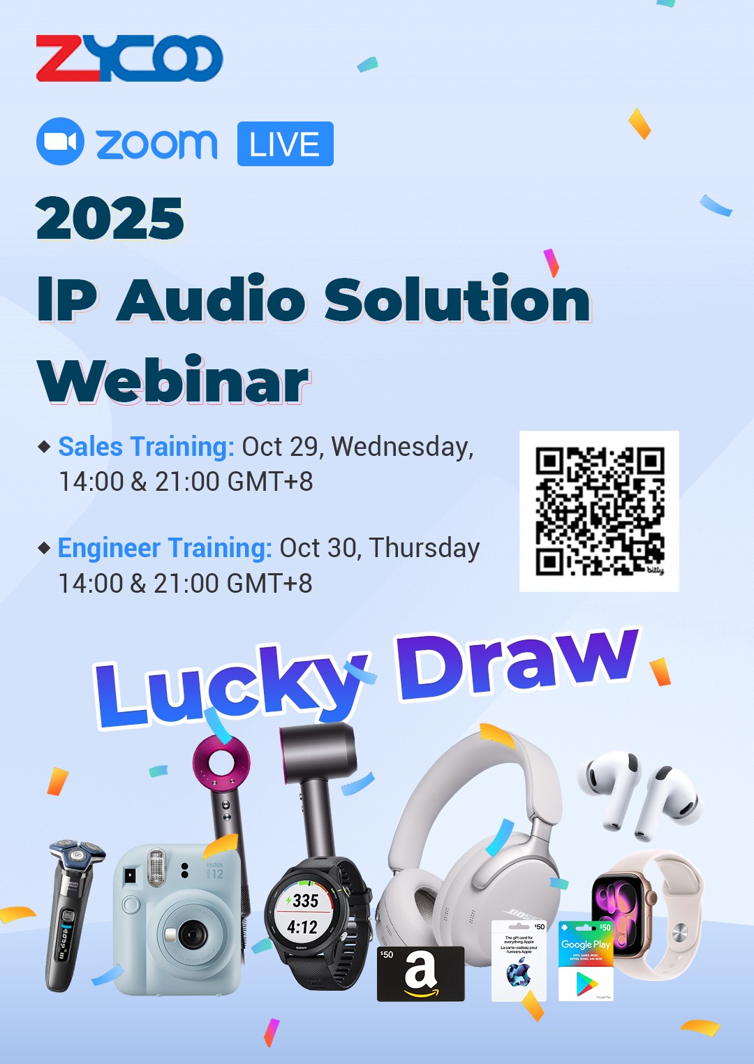 We are excited to announce the 2025 ZYCOO IP Audio Solution Training! This is your opportunity to deepen your professional knowledge, earn official ZYCOO certification, and gain the chance to win amazing prizes through our exclusive Lucky Draw.